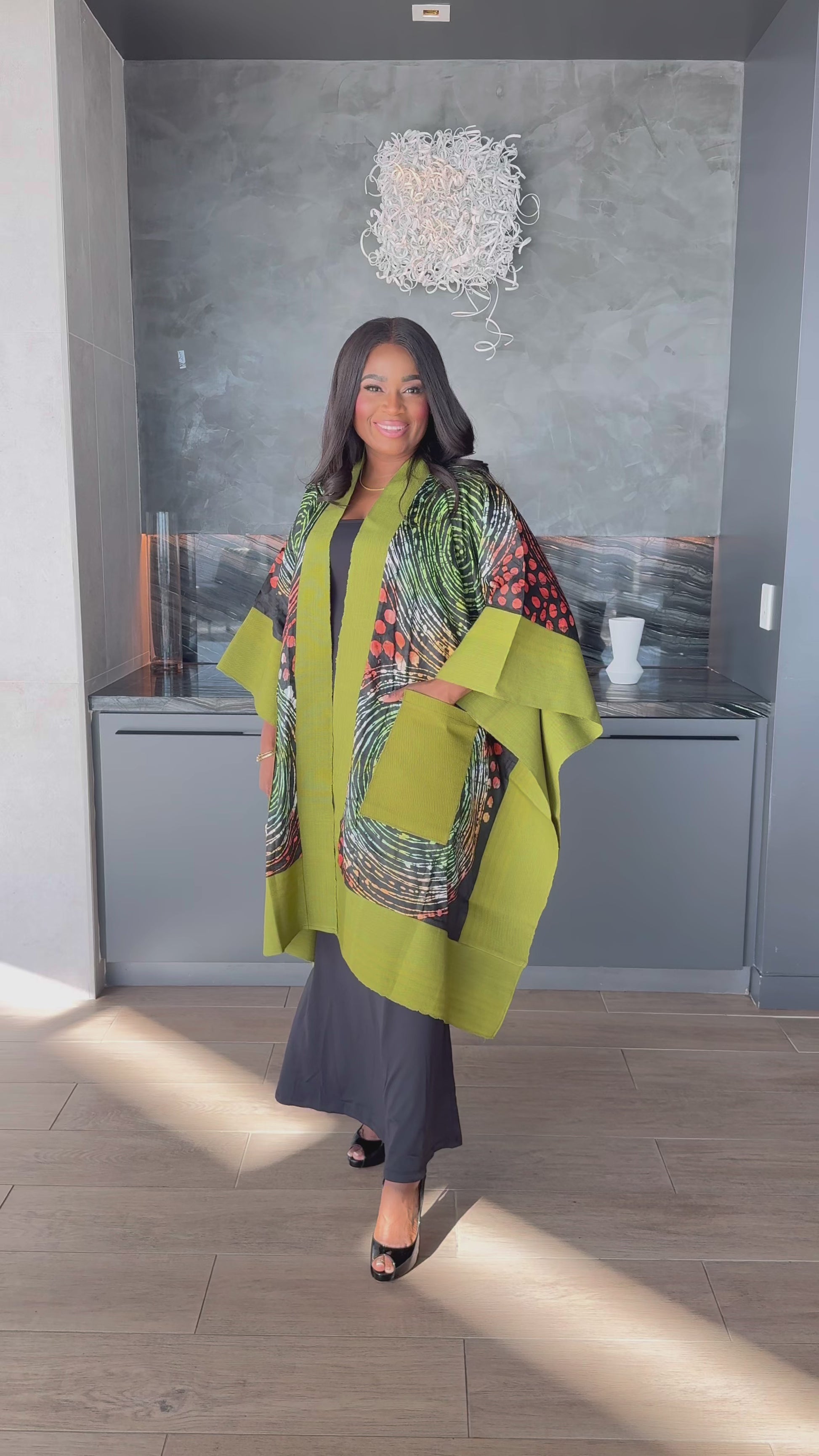 💫 Details: Features 100% cotton Aso Oke pockets and edges, wide statement sleeves, and an open-front silhouette for effortless drape and comfort.
