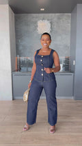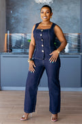 Polished and timeless, the Zahra Denim Set elevates classic denim with a touch of luxury. Designed with a structured silhouette, this two-piece features a square-neck top adorned with statement gold buttons and matching high-waist pants for a sleek, feminine finish.