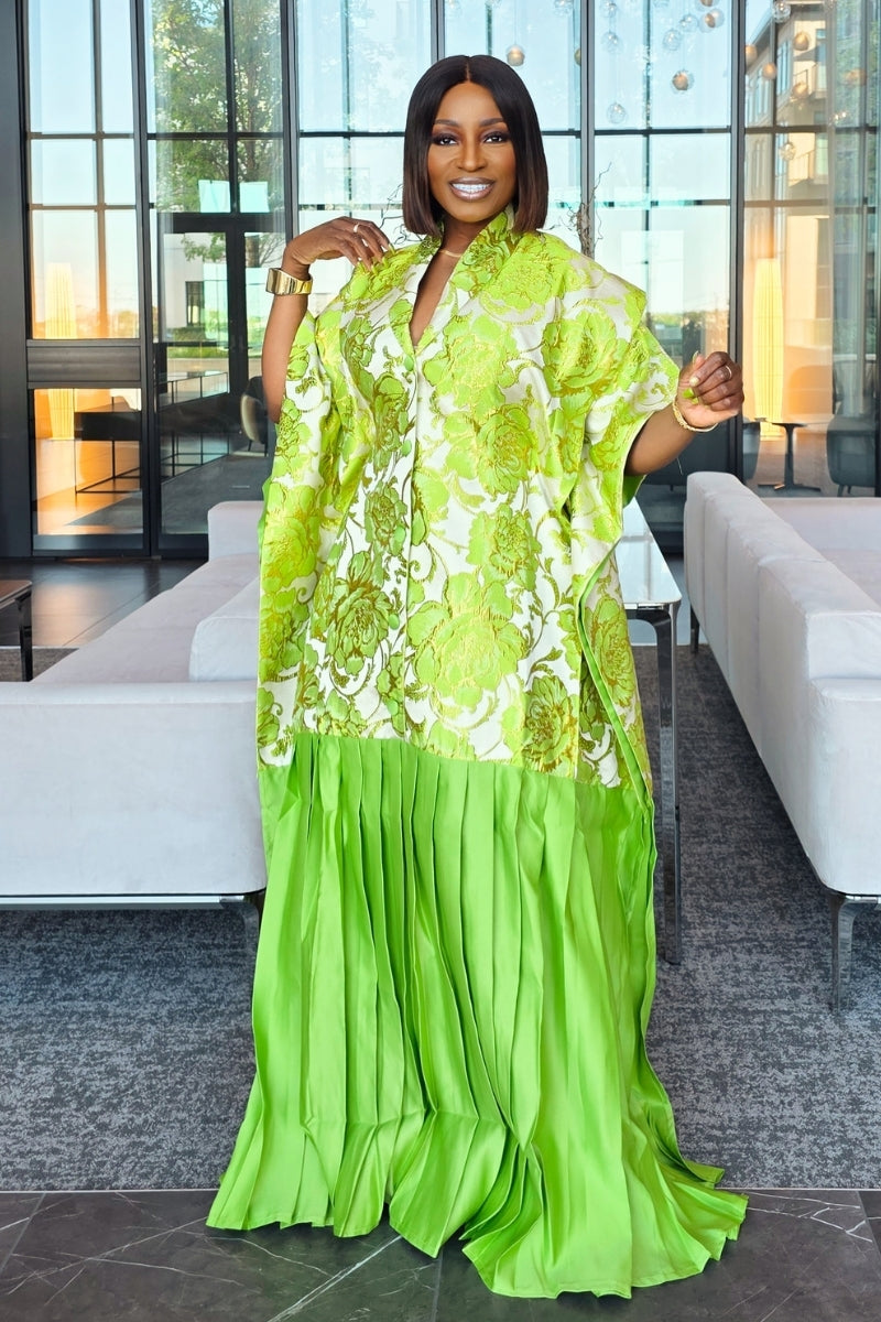 Step into style with the IJO Brocade Boubou — a stunning blend of tradition and modern flair. Made from rich brocade fabric with a pleated Mikado bottom and an inner belt for a flattering fit, this piece is perfect for making a statement at any event.