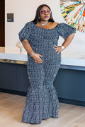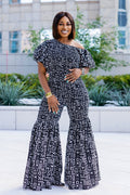 Make a bold statement in our ELLY Ankara Jumpsuit, where elegance meets Afro-luxury. Designed with a one-shoulder neckline for a modern touch, this piece flows into dramatic bell-bottom pants that elongate your frame and command attention. Crafted with 100% cotton Ankara for breathable comfort and bold style.