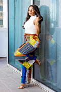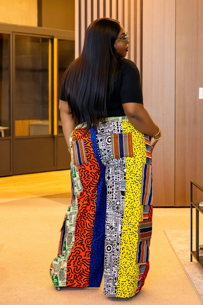 Bold, vibrant, and effortlessly chic β the Kitan Pants are crafted from 100% original cotton Ankara fabric in a stunning blend of multicolors that bring your outfit to life. Each pair is completely unique β patch placements and colors may vary, making every pant one-of-a-kind. Featuring Aso Oke cargo-style pockets, they add a heritage-inspired twist that honors tradition while keeping your look fresh and modern.