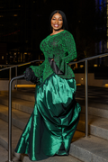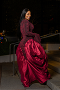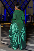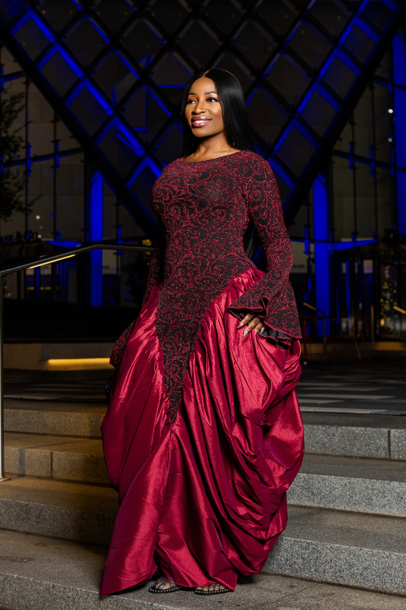 The Lush Dress is designed to make you feel regal, confident, and beautifully set apart. It features an ultra-stretchy, figure-flattering bodice paired with a richly gathered raw silk skirt that adds soft volume and graceful movement.