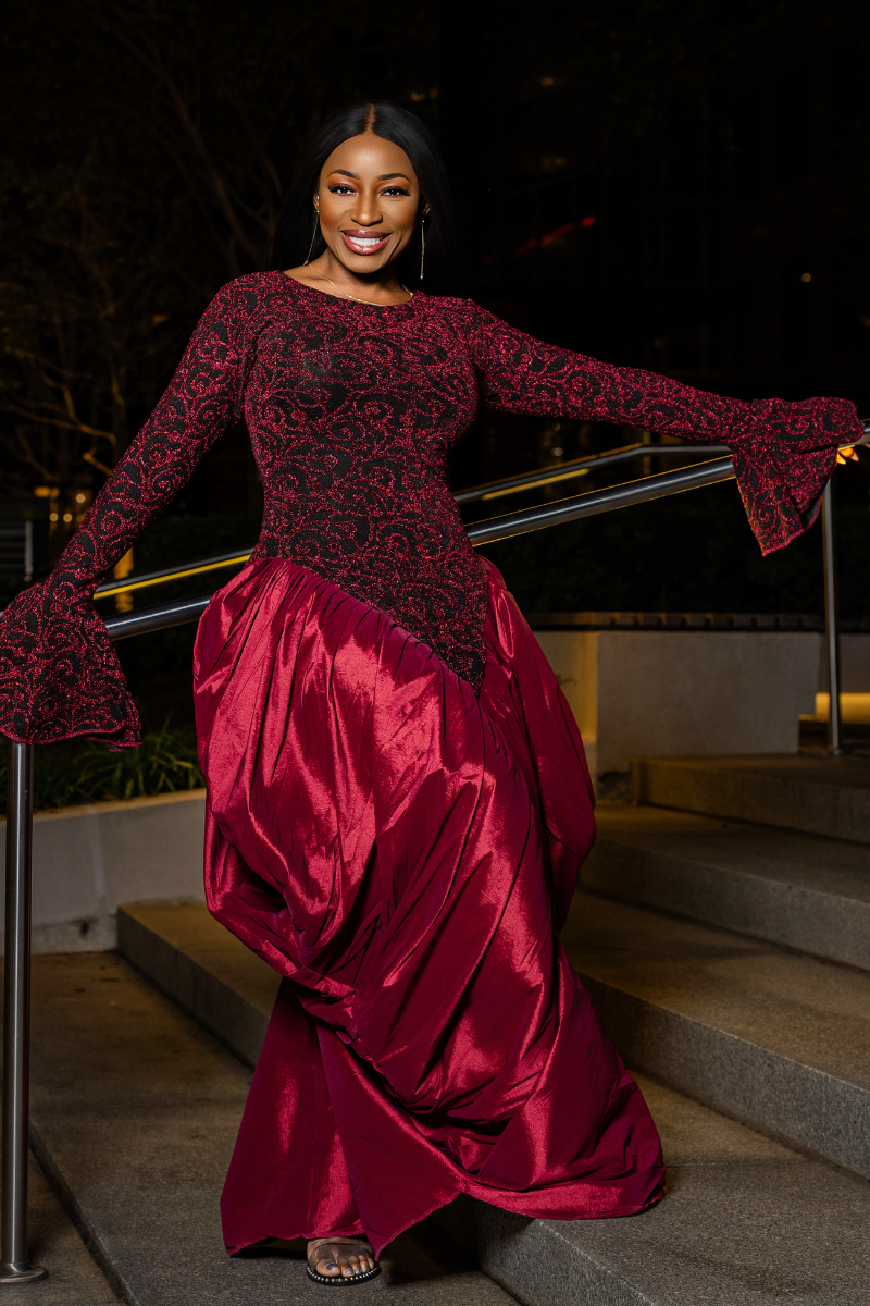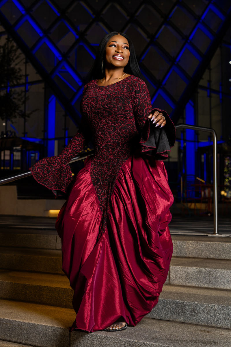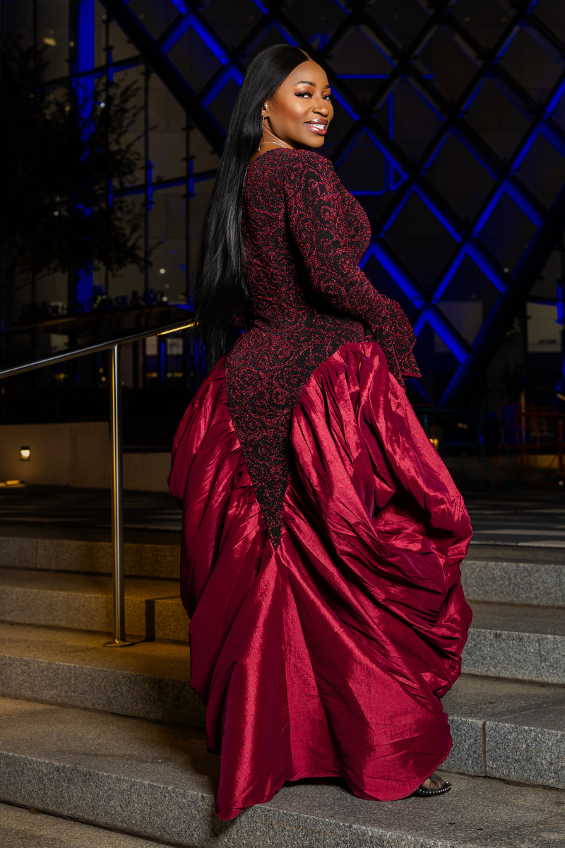 The Lush Dress is designed to make you feel regal, confident, and beautifully set apart. It features an ultra-stretchy, figure-flattering bodice paired with a richly gathered raw silk skirt that adds soft volume and graceful movement.