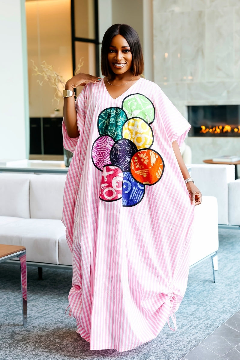 Crafted from luxurious 100% Cotton and adorned with 3D premium adire patches, the Lolly Oversize Dress blends modern luxury with timeless tradition. Designed with a flowing, relaxed silhouette, this dress drapes beautifully while the adjustable drawstring detail allows you to customize the length for your perfect fit.