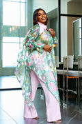 Crafted from premium chiffon and crepe, this set combines detailed craftsmanship with a bold, oversized-collar design for a look that’s both modern and elegant.