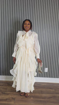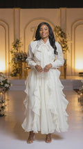 The Princess Dress is a timeless, feminine style designed to move beautifully with every step. Featuring a soft tie neck bow, layered ruffles, and an A line silhouette, this dress offers graceful elegance with a polished finish.