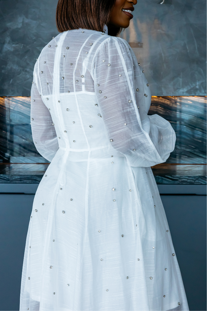 Add heels, accessories, and your radiant energy — the Snow Dress is made to make a statement ❄️✨