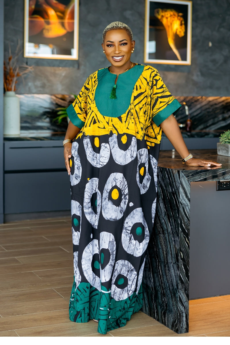 Style it with chic sandals, statement jewelry, and your natural glow — the Titia Boubou is for women who carry elegance with ease. 💛