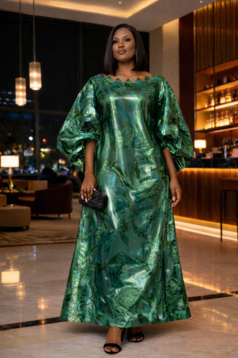 Style with statement accessories and heels to complete the look — the Vicky Metallic Liquid Boubou is the definition of graceful confidence and effortless luxury.