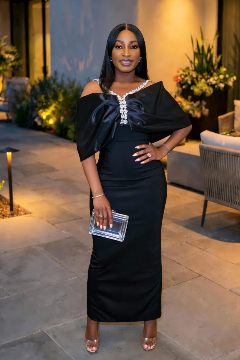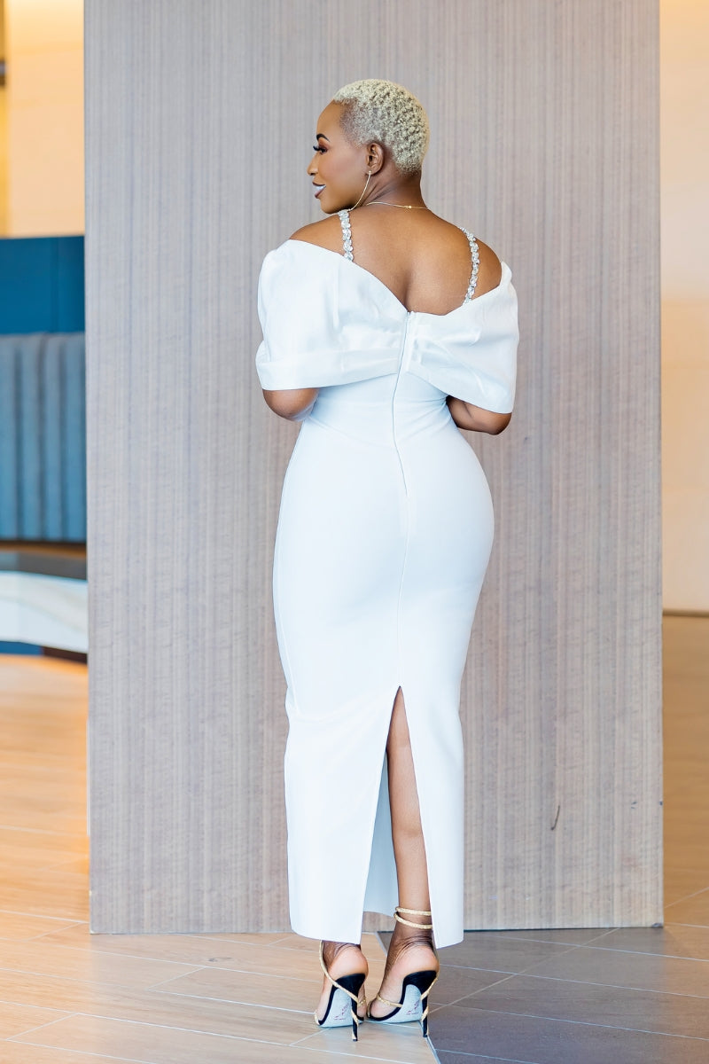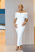 Own the moment in the White Diamond Dress — a bold, radiant piece crafted to make you shine with confidence. Designed from ultra-lux bandage fabric, this ankle-length stunner features 3D rhinestone straps, an off-the-shoulder sleeve, and a sculpted silhouette that hugs every curve.